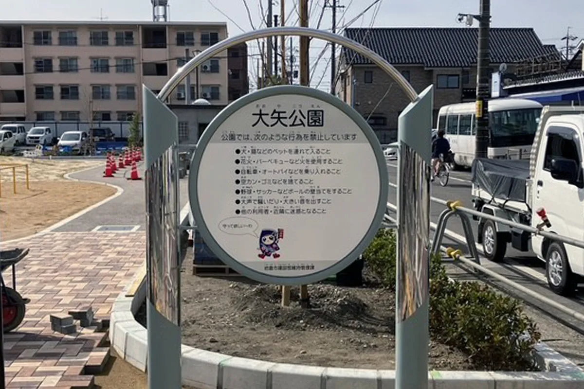 サイン本体は、長く屋外で使用できる耐候性の高い素材とし、公共空間にふさわしいデザインとしました。また、施工の際は周囲の環境や安全に配慮し、通行者や公園利用者の安心を守りながら作業を進めています。